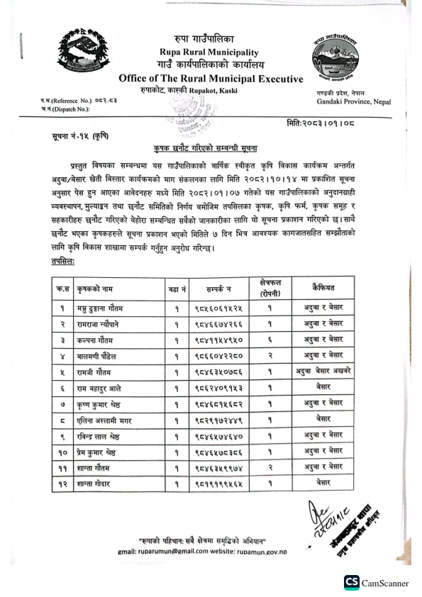 » कृषक छनौट गरिएको सम्बन्धी सूचना