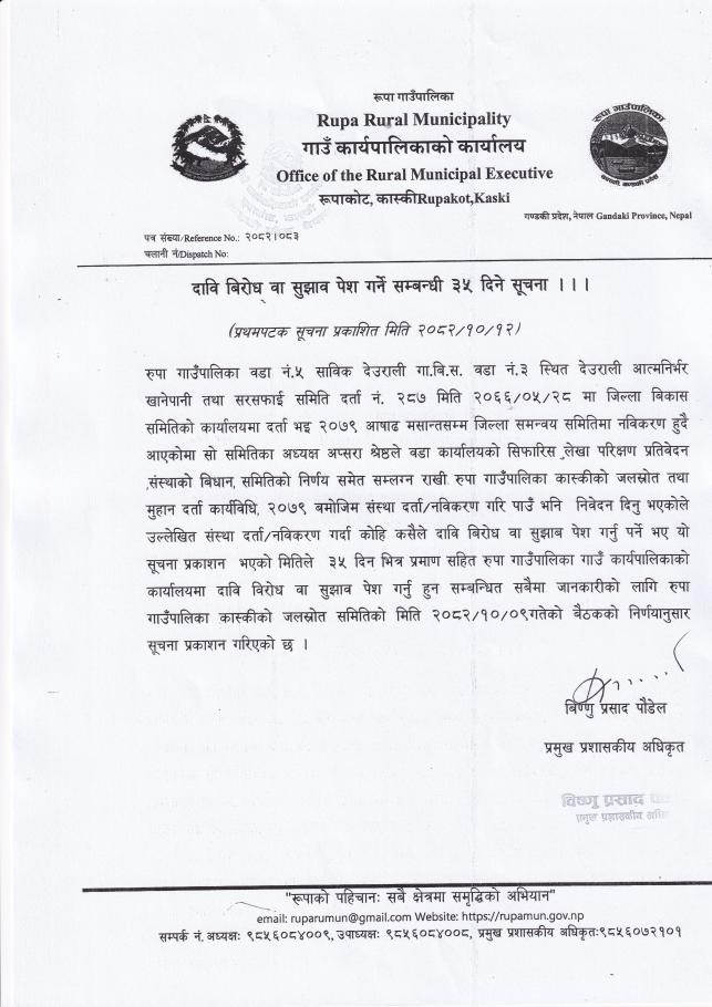 » दावि विरोध वा सुझाव पेश गर्ने सम्बन्धी ३५ दिने सूचना ।।