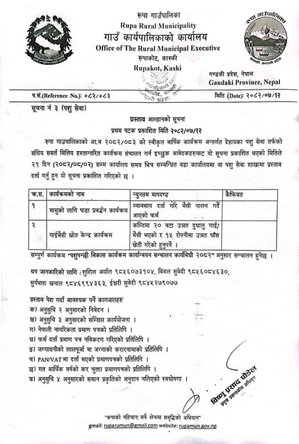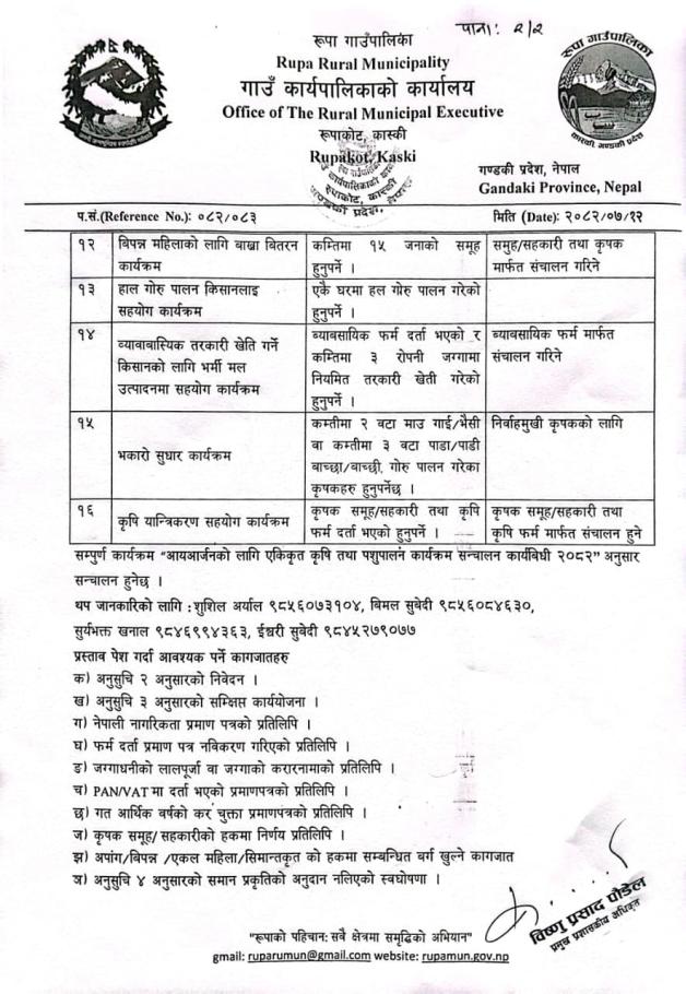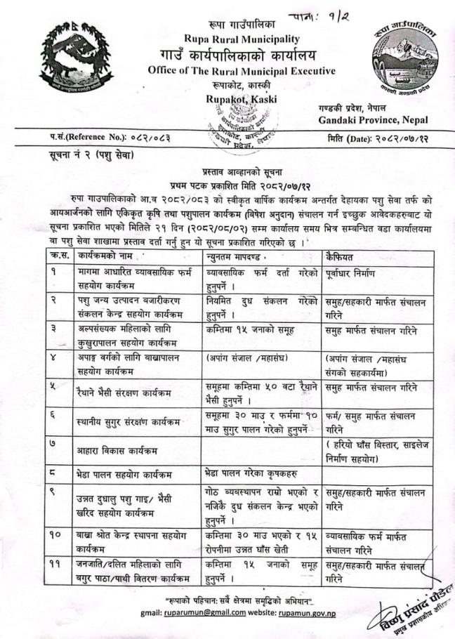 रूपा गाउँपालिका कास्कीको निति तथा कार्यक्रम २०८१।०८२
