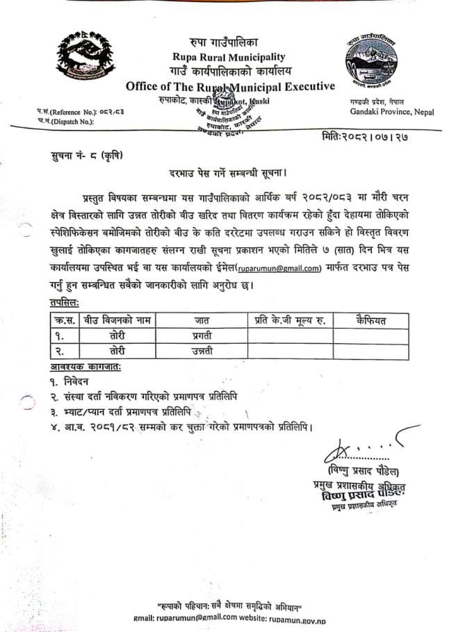दरभाउ पेश सम्बन्धमा ।