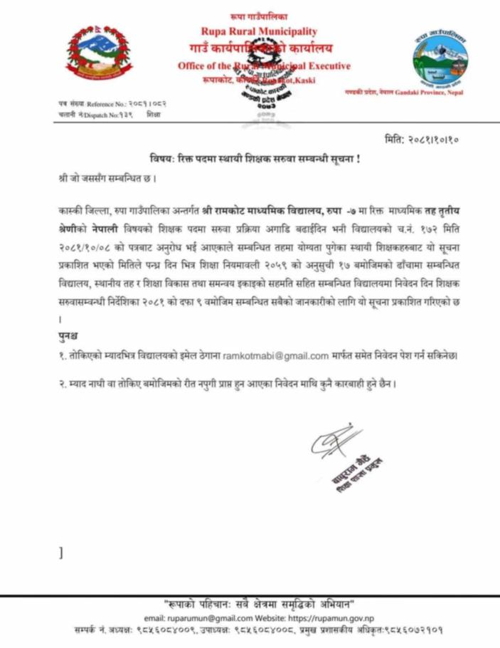 » रिक्त पदमा स्थायी शिक्षक सरुवा सम्बन्धी सूचना !!!